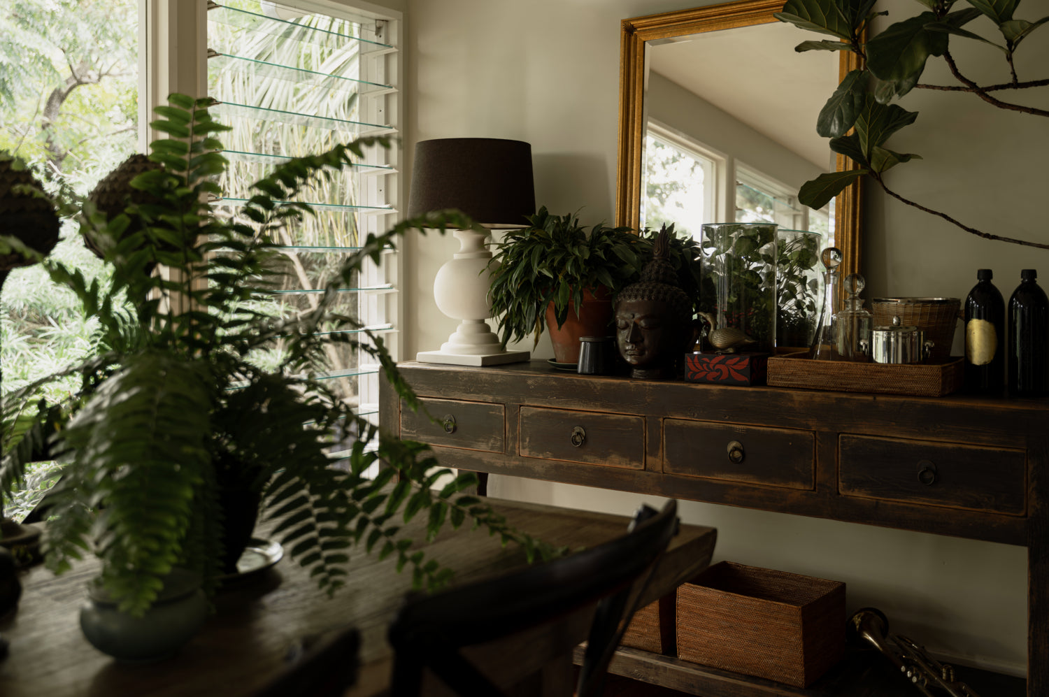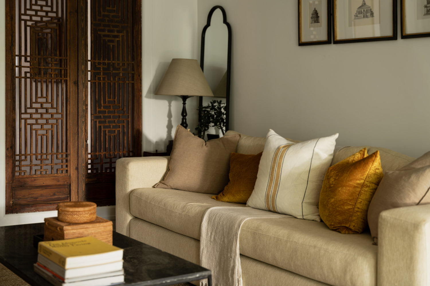 Full interior renovation including personally sourced oriental antiques, lamp base, shade & decor accessories.