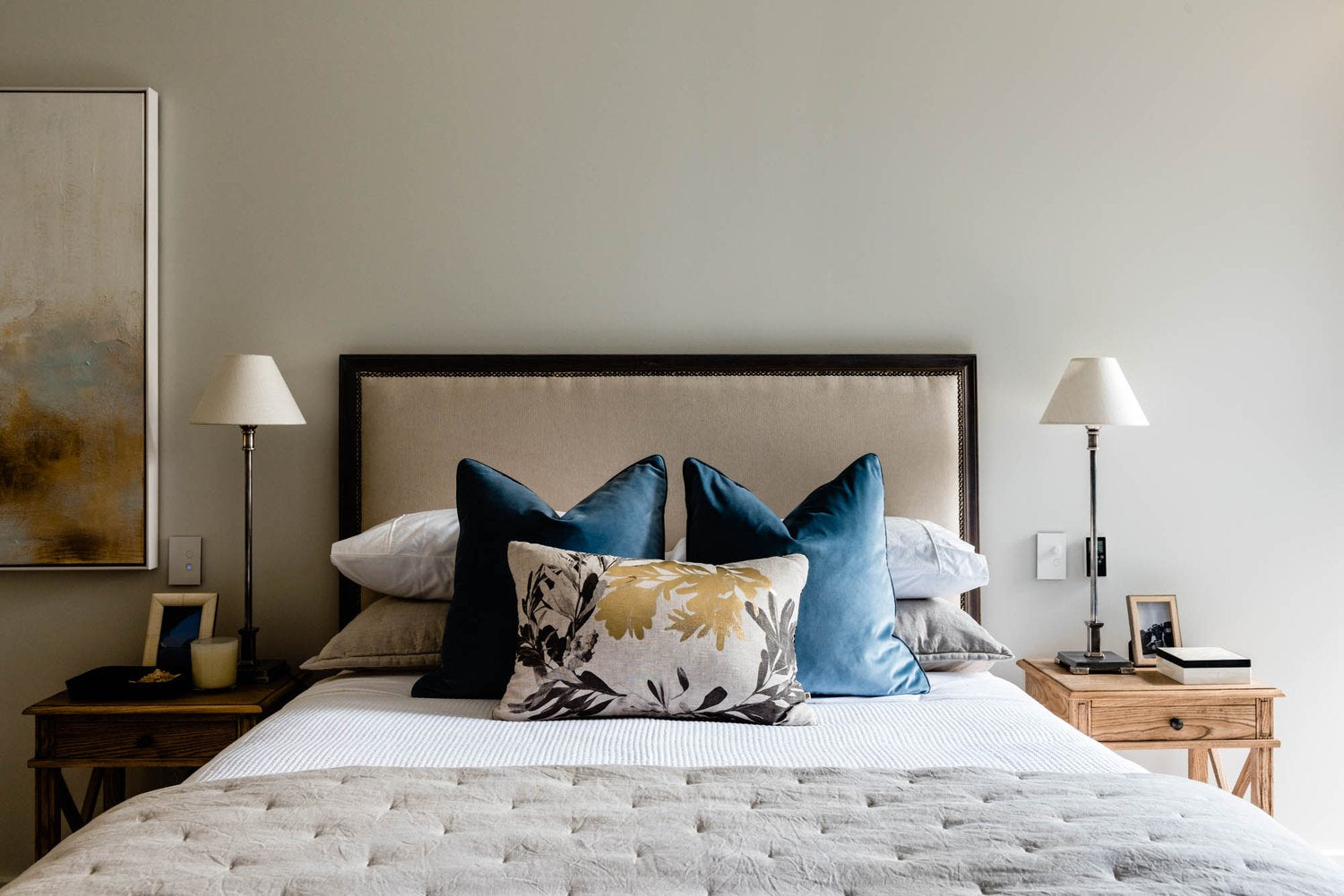 Custom bedhead, cushions & lamp shades. Personally sourced Furniture, Art, Accessories & Bed Linen. Call to discuss your next Interior project